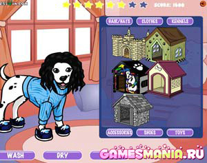 порядок. С помощью нижних кнопок на экране, помоем нашего питомца, затем